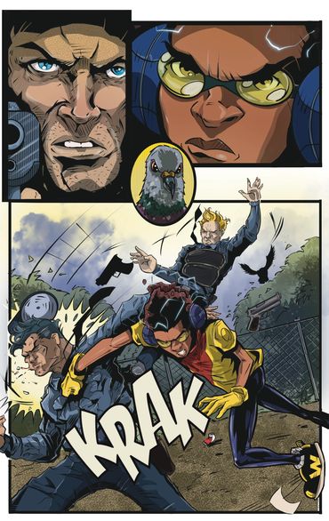 Toronto teen Harlem moonlights as The Beat, a sound-wielding hero who protects his city with his pigeon sidekick, Gabriel. By day, he's just Harlem, but by night, the city's rhythm becomes his weapon, his melody justice.